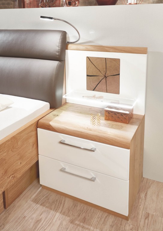 ohne Passepartoutrahmen, Beleuchtung, Nachtkonsolenaufsätze und Bettschubkasten